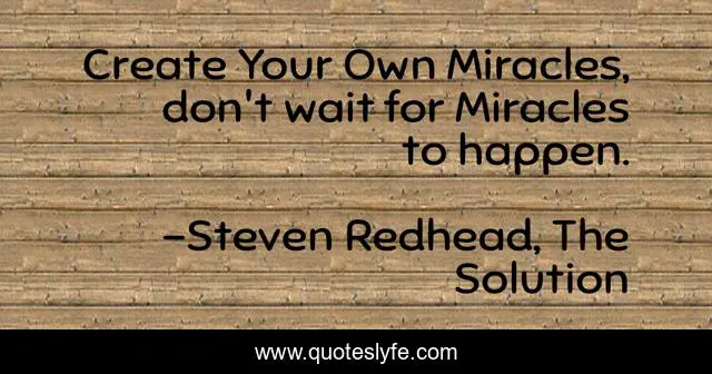 "Steven Redhead, The Solution Quotes." Quoteslyfe.com, 2025. Fri. 05 Dec. 2025. <https://www.quoteslyfe.com/quote/Create-Your-Own-Miracles-don-t-wait-236496>.