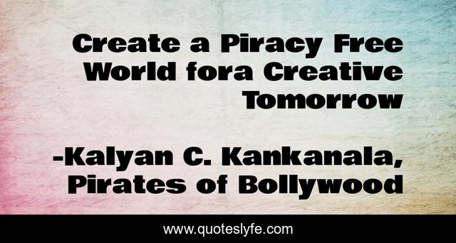 This page presents the quote "Create a Piracy Free World fora Creative Tomorrow". Author of this quote is Kalyan C. Kankanala, Pirates of Bollywood. This quote is about pirates, entertainment, piracy, legal, copyrights, bollywood, thriller,.
