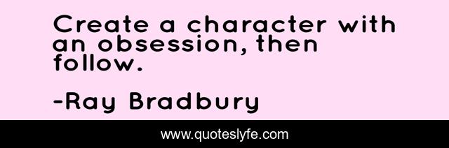 "Ray Bradbury Quotes." Quoteslyfe.com, 2025. Sat. 06 Dec. 2025. <https://www.quoteslyfe.com/quote/Create-a-character-with-an-obsession-then-173626>.