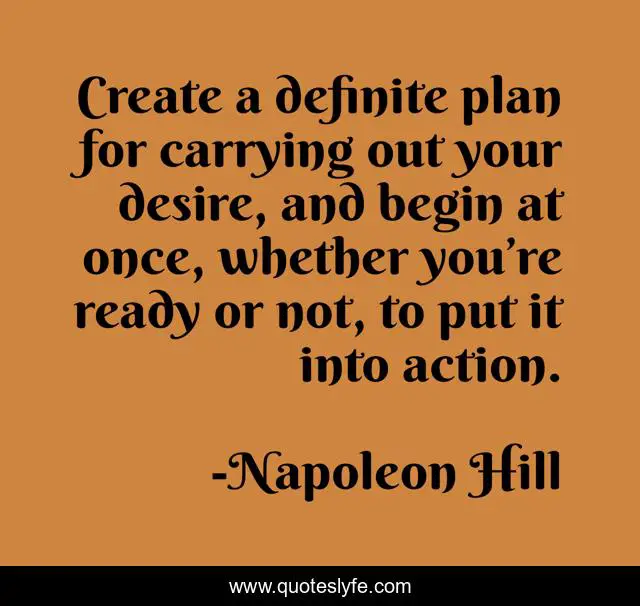 "Napoleon Hill Quotes." Quoteslyfe.com, 2025. Mon. 08 Dec. 2025. <https://www.quoteslyfe.com/quote/Create-a-definite-plan-for-carrying-out-36938>.