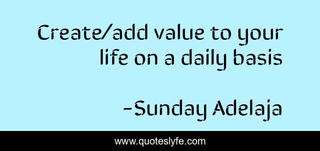 This page presents the quote "Create/add value to your life on a daily basis". Author of this quote is Sunday Adelaja. This quote is about life, blessing, finance, money, work, time-management, value, job, joblessness,.