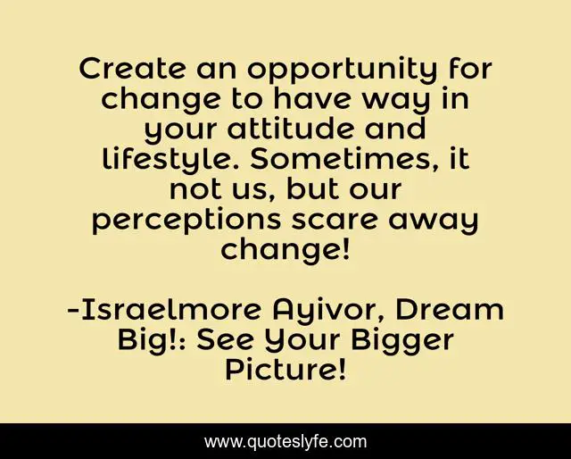 "Israelmore Ayivor, Dream Big!: See Your Bigger Picture! Quotes." Quoteslyfe.com, 2025. Fri. 05 Dec. 2025. <https://www.quoteslyfe.com/quote/Create-an-opportunity-for-change-to-have-129478>.