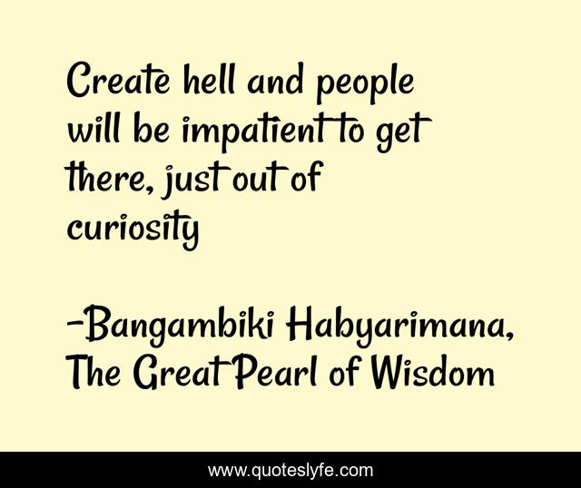 "Bangambiki Habyarimana, The Great Pearl of Wisdom Quotes." Quoteslyfe.com, 2025. Mon. 08 Dec. 2025. <https://www.quoteslyfe.com/quote/Create-hell-and-people-will-be-impatient-201009>.