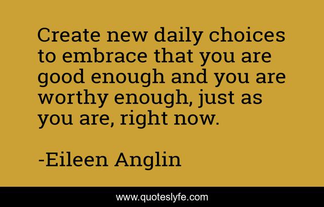 This page presents the quote "Create new daily choices to embrace that you are good enough and you are worthy enough, just as you are, right now.". Author of this quote is Eileen Anglin. This quote is about confidence, success, positive, motivational, optimistic, life-lessons, self-improvement,.