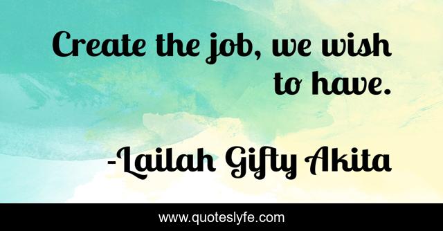 "Lailah Gifty Akita Quotes." Quoteslyfe.com, 2025. Fri. 05 Dec. 2025. <https://www.quoteslyfe.com/quote/Create-the-job-we-wish-to-have-197822>.