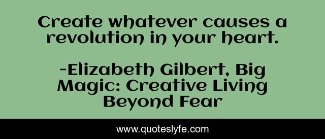 "Elizabeth Gilbert, Big Magic: Creative Living Beyond Fear Quotes." Quoteslyfe.com, 2025. Fri. 05 Dec. 2025. <https://www.quoteslyfe.com/quote/Create-whatever-causes-a-revolution-in-your-108281>.