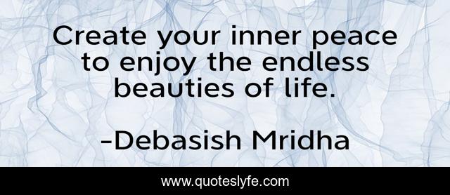 This page presents the quote "Create your inner peace to enjoy the endless beauties of life.". Author of this quote is Debasish Mridha. This quote is about peace, beauties-of-life, philosophy, debasish-mridha, quotes, inspirational, enthusiasm, debasish-mridha-m-d, inner-peace,.