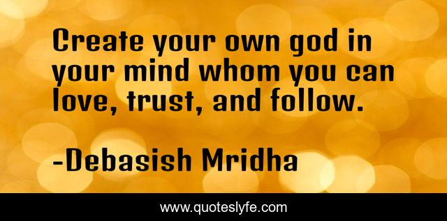 This page presents the quote "Create your own god in your mind whom you can love, trust, and follow.". Author of this quote is Debasish Mridha. This quote is about life, love, knowledge, inspirational, intelligence, philosophy, wisdom, quotes, affection,.