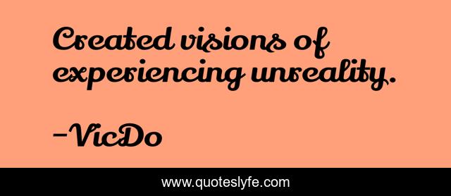 This page presents the quote "Created visions of experiencing unreality.". Author of this quote is VicDo. This quote is about unreality, visions, we, reality,.