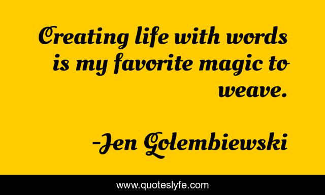 This page presents the quote "Creating life with words is my favorite magic to weave.". Author of this quote is Jen Golembiewski. This quote is about magic, writing,.