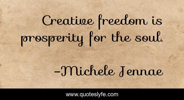 This page presents the quote "Creative freedom is prosperity for the soul.". Author of this quote is Michele Jennae. This quote is about art, soulful-living, creativity, prosperity,.