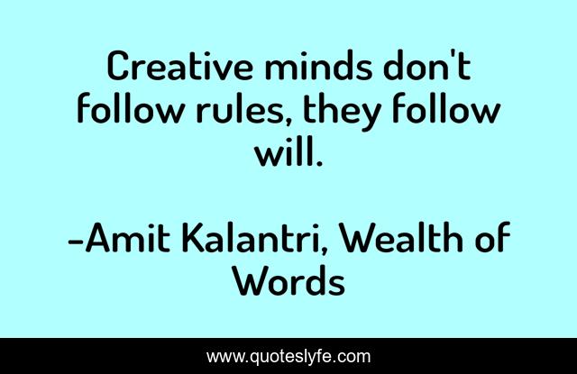 "Amit Kalantri, Wealth of Words Quotes." Quoteslyfe.com, 2025. Fri. 05 Dec. 2025. <https://www.quoteslyfe.com/quote/Creative-minds-don-t-follow-rules-they-87751>.