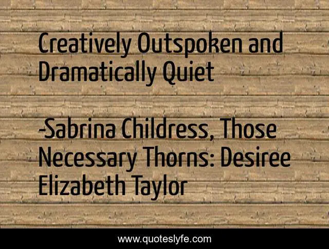 "Sabrina Childress, Those Necessary Thorns: Desiree Elizabeth Taylor Quotes." Quoteslyfe.com, 2025. Sat. 06 Dec. 2025. <https://www.quoteslyfe.com/quote/Creatively-Outspoken-and-Dramatically-Quiet-224620>.