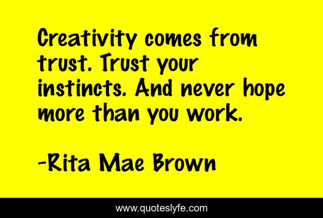 This page presents the quote "Creativity comes from trust. Trust your instincts. And never hope more than you work.". Author of this quote is Rita Mae Brown. .