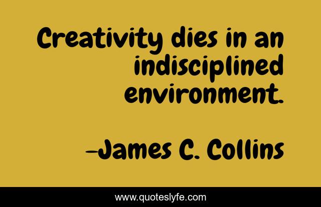 This page presents the quote "Creativity dies in an indisciplined environment.". Author of this quote is James C. Collins. This quote is about creativity, innovation,.