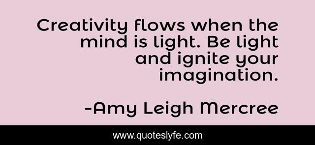 This page presents the quote "Creativity flows when the mind is light. Be light and ignite your imagination.". Author of this quote is Amy Leigh Mercree. This quote is about light-mind, amy-leigh-mercree, light, quote-about-life, creativity, imagination, quotes-tumblr, creativity-flows, inspirational,.