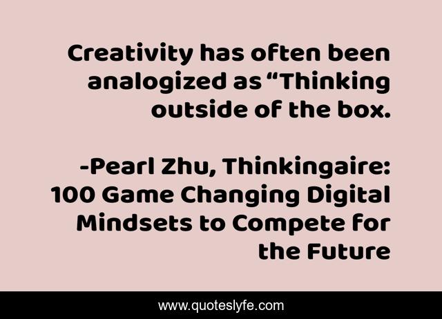This page presents the quote "Creativity has often been analogized as “Thinking outside of the box.". Author of this quote is Pearl Zhu, Thinkingaire: 100 Game Changing Digital Mindsets to Compete for the Future. This quote is about thinking, digital-mind, innovation,.