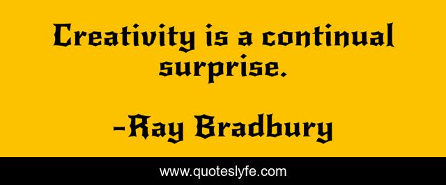 This page presents the quote "Creativity is a continual surprise.". Author of this quote is Ray Bradbury. .