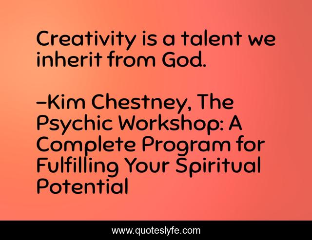 "Kim Chestney, The Psychic Workshop: A Complete Program for Fulfilling Your Spiritual Potential Quotes." Quoteslyfe.com, 2025. Fri. 05 Dec. 2025. <https://www.quoteslyfe.com/quote/Creativity-is-a-talent-we-inherit-from-107843>.