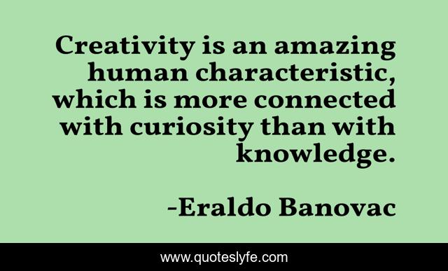This page presents the quote "Creativity is an amazing human characteristic, which is more connected with curiosity than with knowledge.". Author of this quote is Eraldo Banovac. This quote is about human-nature, creativity, knowledge, curiosity, human-characteristics,.