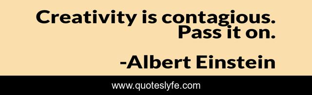 This page presents the quote "Creativity is contagious. Pass it on.". Author of this quote is Albert Einstein. This quote is about enthusiasm, creativity, inspirational,.
