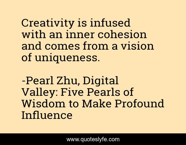"Pearl Zhu, Digital Valley: Five Pearls of Wisdom to Make Profound Influence Quotes." Quoteslyfe.com, 2025. Wed. 24 Dec. 2025. <https://www.quoteslyfe.com/quote/Creativity-is-infused-with-an-inner-cohesion-108089>.