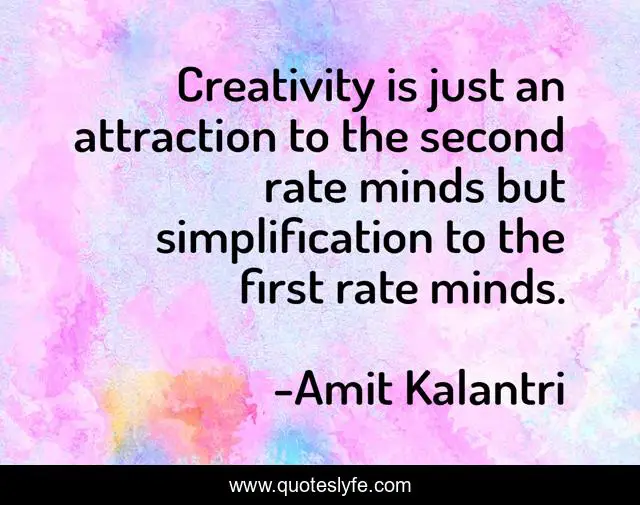 Creativity is just an attraction to the second rate minds but simplification to the first rate minds.