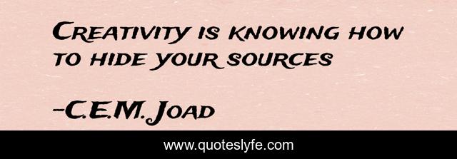 This page presents the quote "Creativity is knowing how to hide your sources". Author of this quote is C.E.M. Joad. This quote is about misattributed-to-einstein, creativity, humor, paraphrased,.