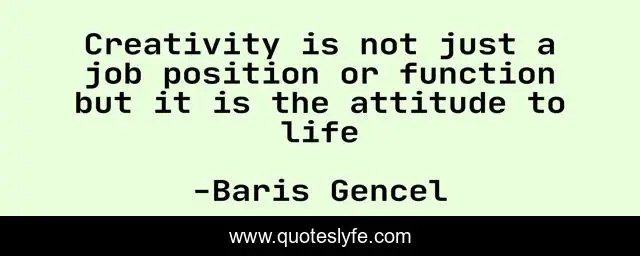 This page presents the quote "Creativity is not just a job position or function but it is the attitude to life". Author of this quote is Baris Gencel. This quote is about life, creativity, creative,.