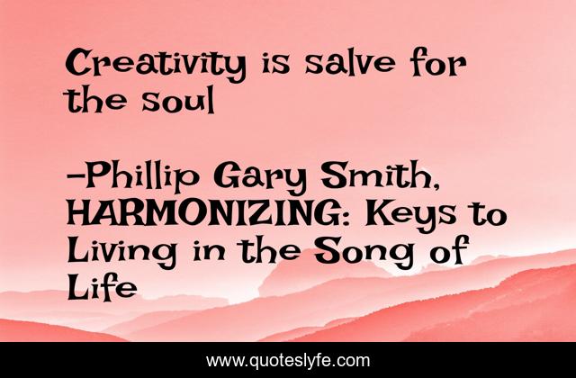 "Phillip Gary Smith, HARMONIZING: Keys to Living in the Song of Life Quotes." Quoteslyfe.com, 2025. Mon. 08 Dec. 2025. <https://www.quoteslyfe.com/quote/Creativity-is-salve-for-the-soul-108009>.