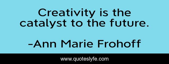 "Ann Marie Frohoff Quotes." Quoteslyfe.com, 2025. Fri. 05 Dec. 2025. <https://www.quoteslyfe.com/quote/Creativity-is-the-catalyst-to-the-future-18365>.