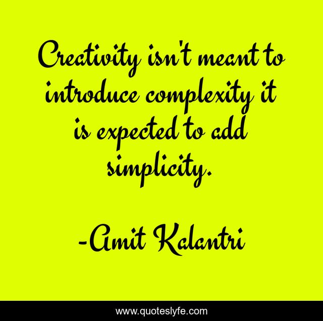 "Amit Kalantri Quotes." Quoteslyfe.com, 2025. Fri. 05 Dec. 2025. <https://www.quoteslyfe.com/quote/Creativity-isn-t-meant-to-introduce-complexity-108430>.