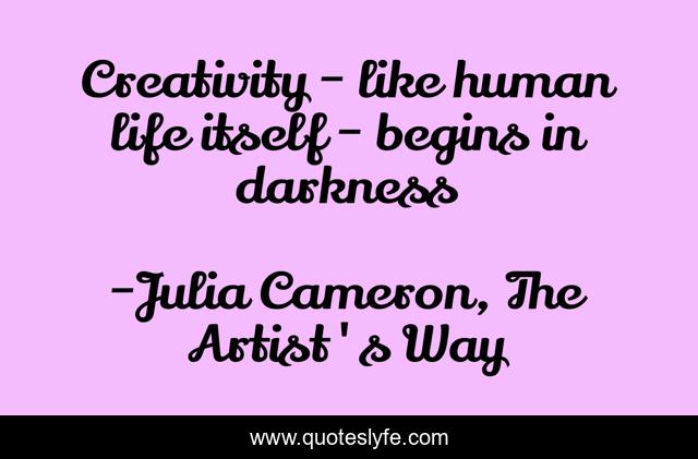 This page presents the quote "Creativity - like human life itself - begins in darkness". Author of this quote is Julia Cameron, The Artist's Way. This quote is about spirituality, writing,.