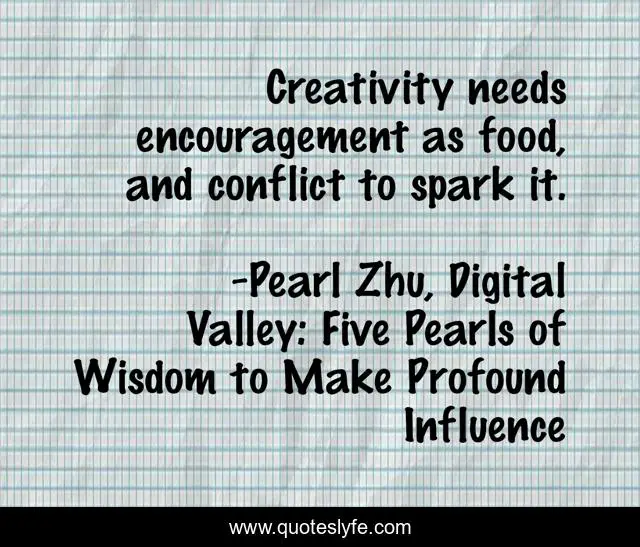 This page presents the quote "Creativity needs encouragement as food, and conflict to spark it.". Author of this quote is Pearl Zhu, Digital Valley: Five Pearls of Wisdom to Make Profound Influence. .