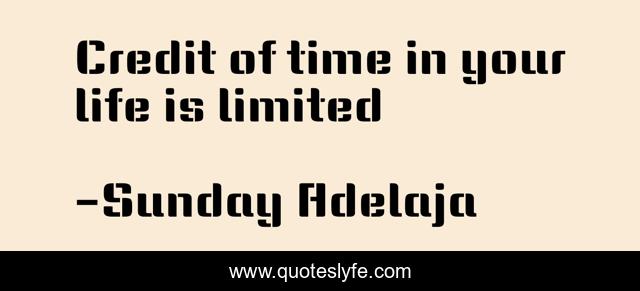 This page presents the quote "Credit of time in your life is limited". Author of this quote is Sunday Adelaja. This quote is about limited, life, mission, calling, credit, purpose, time,.