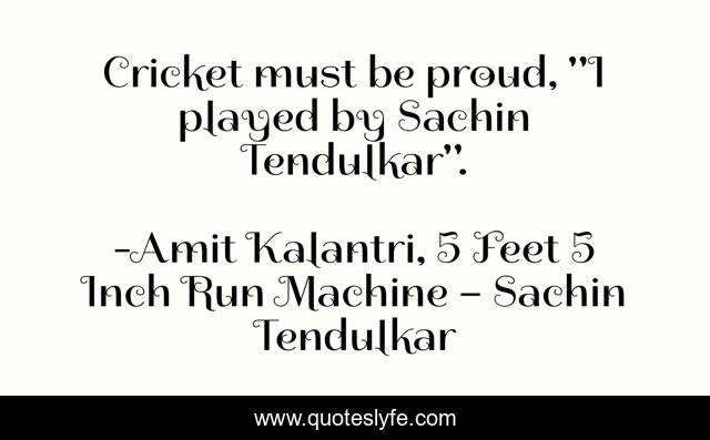 "Amit Kalantri, 5 Feet 5 Inch Run Machine – Sachin Tendulkar Quotes." Quoteslyfe.com, 2025. Mon. 08 Dec. 2025. <https://www.quoteslyfe.com/quote/Cricket-must-be-proud-I-played-by-197730>.