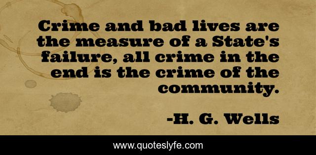 This page presents the quote "Crime and bad lives are the measure of a State's failure, all crime in the end is the crime of the community.". Author of this quote is H. G. Wells. This quote is about end, community, measure,.