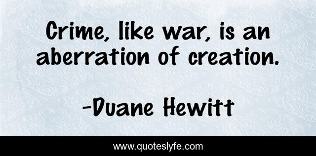 This page presents the quote "Crime, like war, is an aberration of creation.". Author of this quote is Duane Hewitt. This quote is about creation, war, crime,.