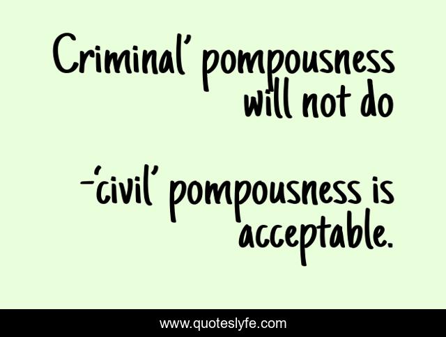 "‘civil’ pompousness is acceptable. Quotes." Quoteslyfe.com, 2025. Sat. 06 Dec. 2025. <https://www.quoteslyfe.com/quote/Criminal-pompousness-will-not-do-67411>.