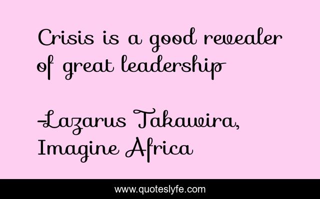 This page presents the quote "Crisis is a good revealer of great leadership". Author of this quote is Lazarus Takawira, Imagine Africa. .