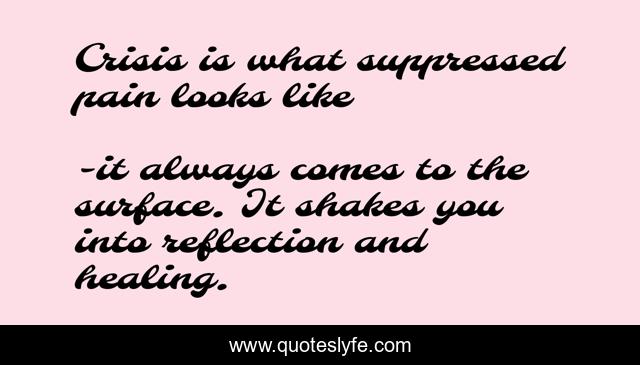 "it always comes to the surface. It shakes you into reflection and healing. Quotes." Quoteslyfe.com, 2025. Tue. 09 Dec. 2025. <https://www.quoteslyfe.com/quote/Crisis-is-what-suppressed-pain-looks-like-144567>.
