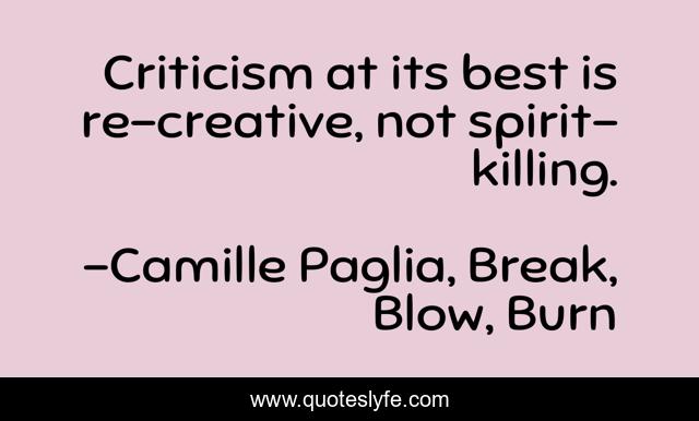 "Camille Paglia, Break, Blow, Burn Quotes." Quoteslyfe.com, 2025. Sun. 07 Dec. 2025. <https://www.quoteslyfe.com/quote/Criticism-at-its-best-is-re-creative-226119>.