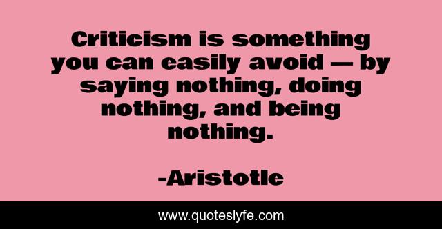 This page presents the quote "Criticism is something you can easily avoid — by saying nothing, doing nothing, and being nothing.". Author of this quote is Aristotle. .