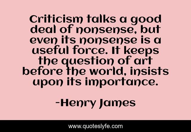 "Henry James Quotes." Quoteslyfe.com, 2025. Sat. 06 Dec. 2025. <https://www.quoteslyfe.com/quote/Criticism-talks-a-good-deal-of-nonsense-33698>.