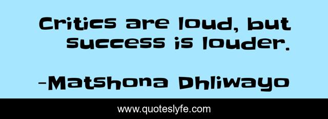 "Matshona Dhliwayo Quotes." Quoteslyfe.com, 2025. Mon. 08 Dec. 2025. <https://www.quoteslyfe.com/quote/Critics-are-loud-but-success-is-louder-83712>.