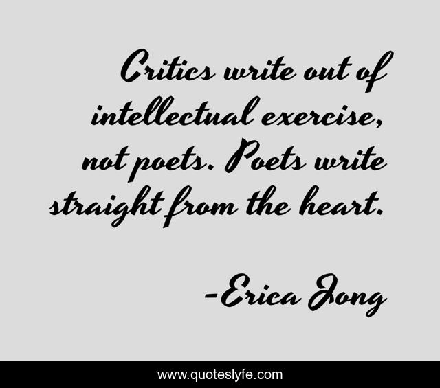 This page presents the quote "Critics write out of intellectual exercise, not poets. Poets write straight from the heart.". Author of this quote is Erica Jong. .