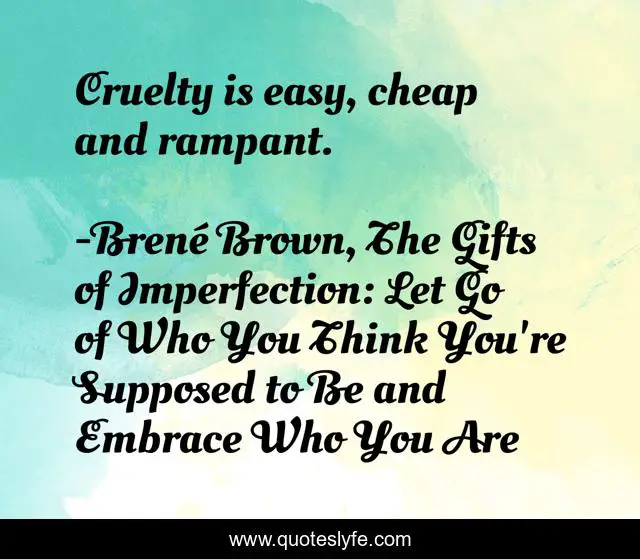 "Brené Brown, The Gifts of Imperfection: Let Go of Who You Think You're Supposed to Be and Embrace Who You Are Quotes." Quoteslyfe.com, 2025. Fri. 05 Dec. 2025. <https://www.quoteslyfe.com/quote/Cruelty-is-easy-cheap-and-rampant-258959>.