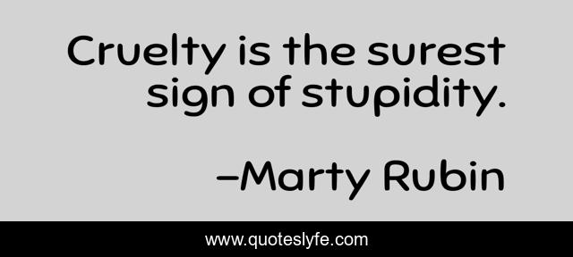 This page presents the quote "Cruelty is the surest sign of stupidity.". Author of this quote is Marty Rubin. This quote is about stupidity, cruelty,.