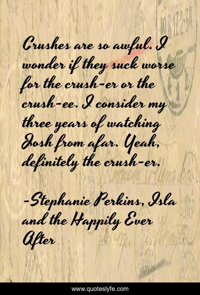 "Stephanie Perkins, Isla and the Happily Ever After Quotes." Quoteslyfe.com, 2025. Sat. 06 Dec. 2025. <https://www.quoteslyfe.com/quote/Crushes-are-so-awful-I-wonder-if-235101>.
