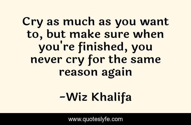 This page presents the quote "Cry as much as you want to, but make sure when you're finished, you never cry for the same reason again". Author of this quote is Wiz Khalifa. This quote is about sadness, cry,.